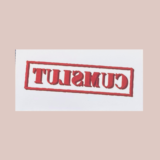 An image of the Slut temporary tattoo from House of Chastity before it is applied, please note that it will be back to front when you read it.