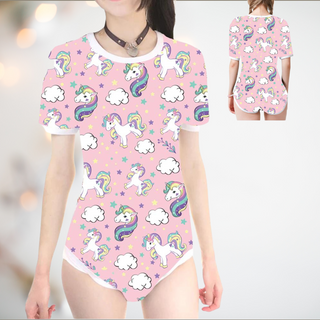 Adult baby bodysuit with unicorns and rainbows from House Of Chastity