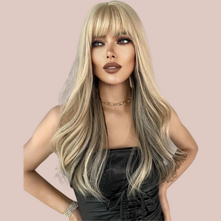 HOC8033-1 Ash Blonde Long Length Hair. Flowing full locks with a soft feathered fringe