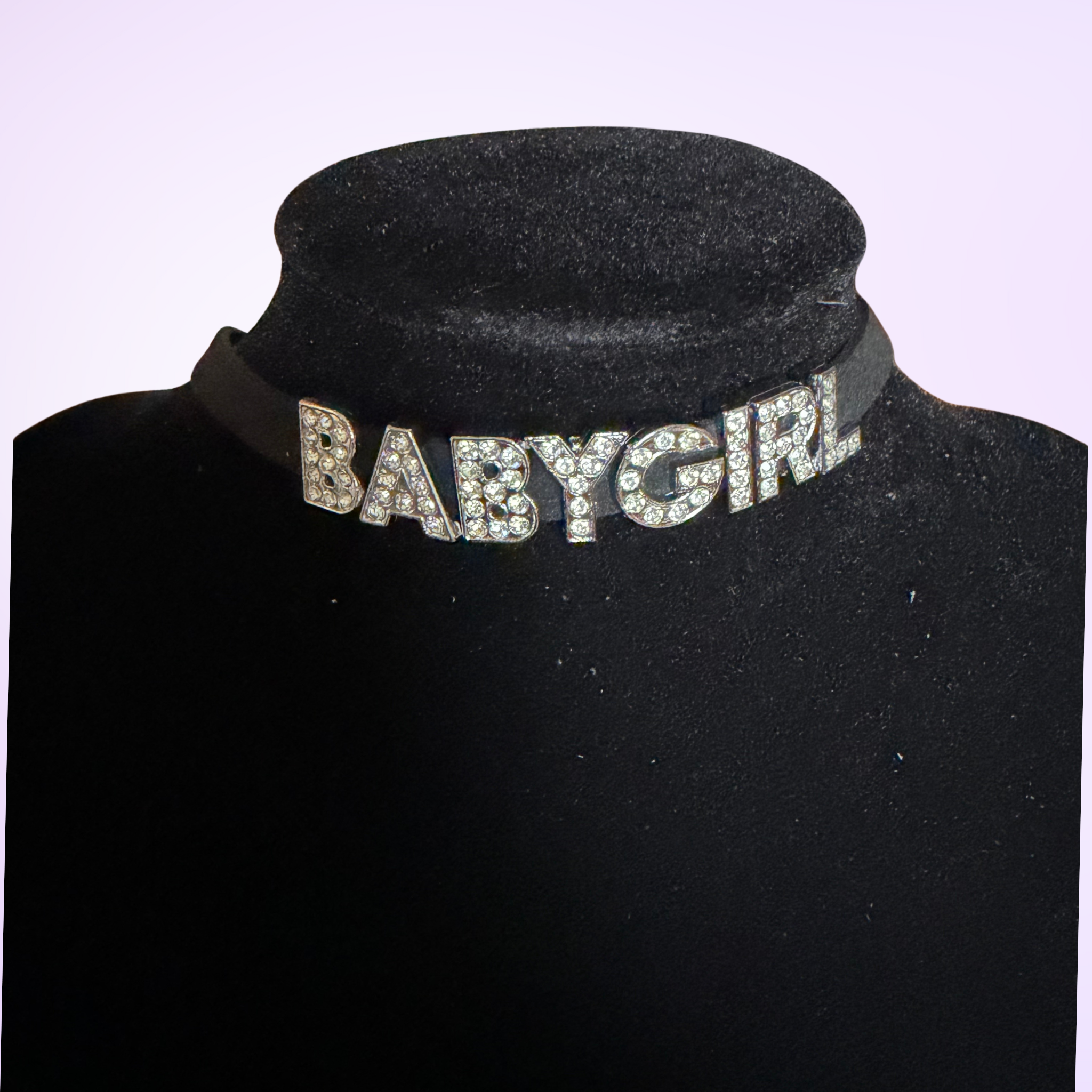 Turn up the charm with a choker that speaks for itself. This playful pink suede necklace shimmers with BABY GIRL diamante lettering, delivering a bold, glittering statement that instantly elevates your look—from coffee runs to festival nights.