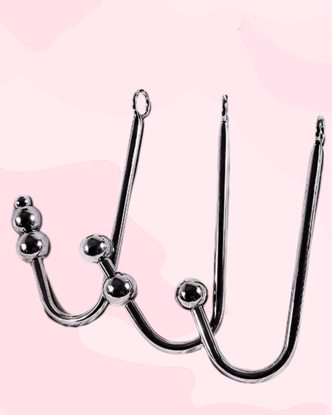 - Hygienic, smooth stainless steel anal hooks for confident, easy cleaning.