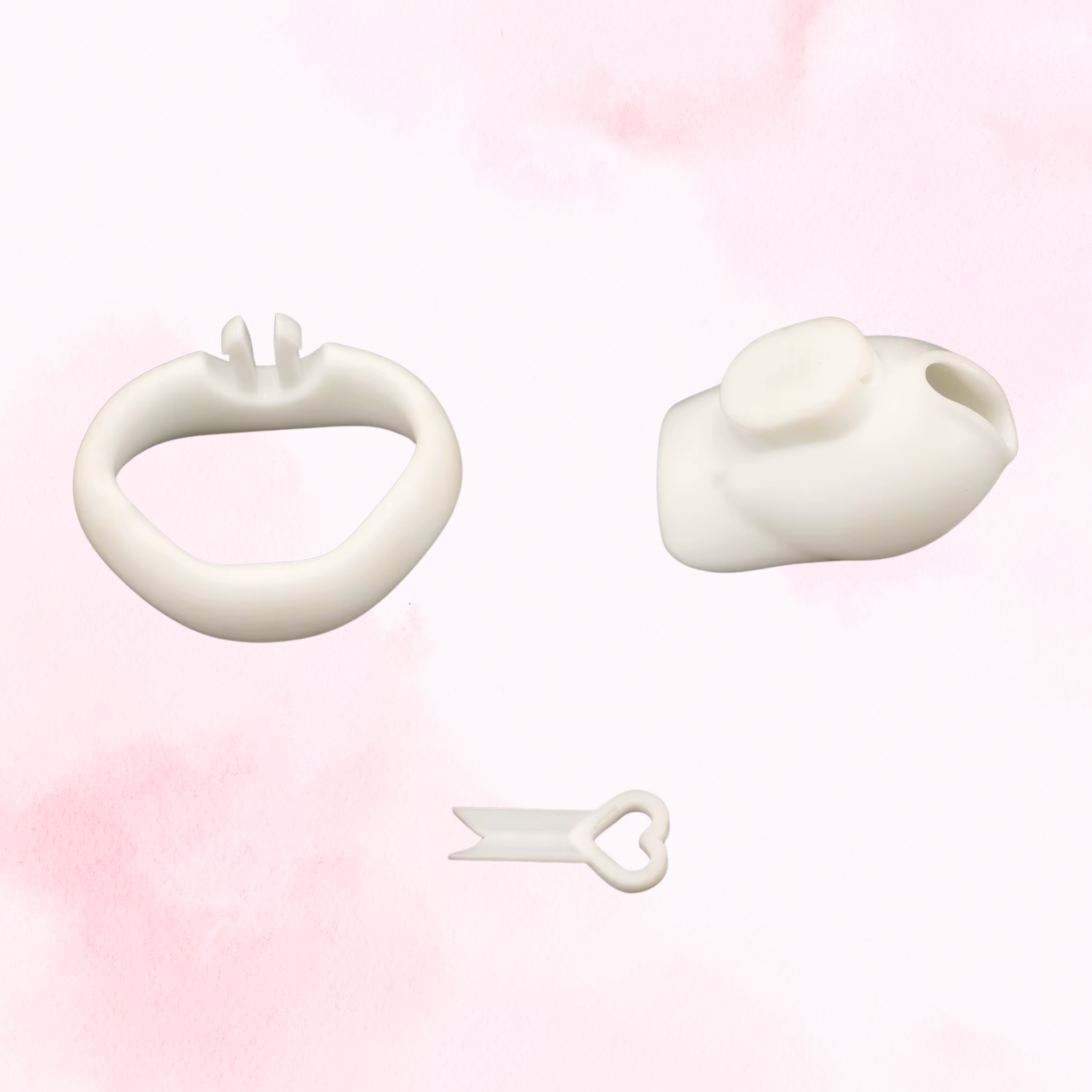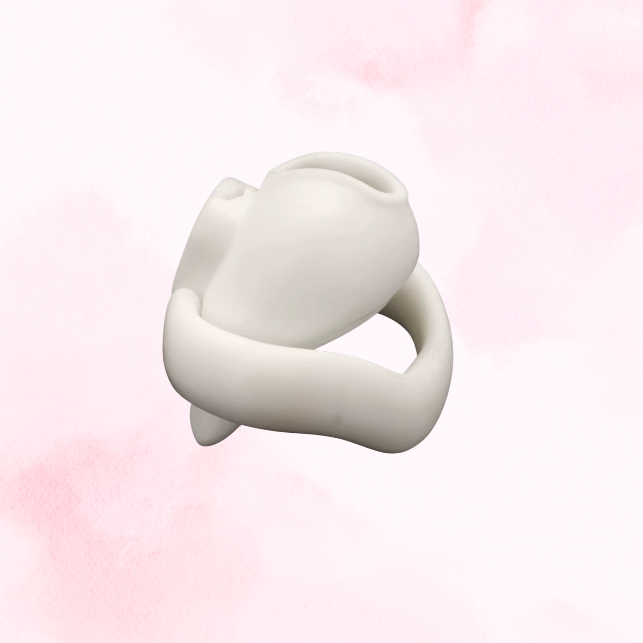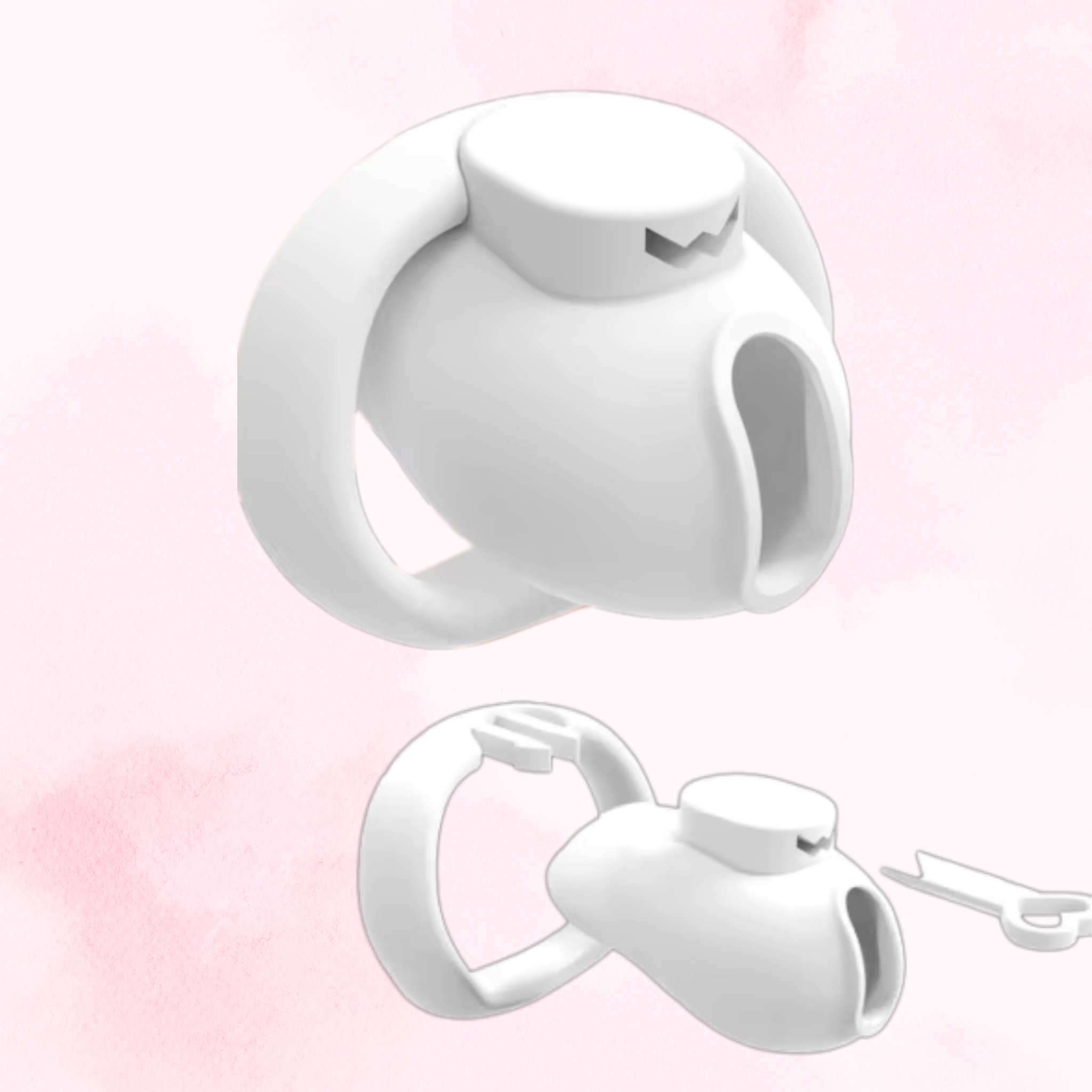 Meet the Halo Slide: a sleek, futuristic chastity cage with a smooth, rounded profile and compact “nub” sizing for discreet, everyday wear. Its innovative click-lock system offers a clean, padlock-free look—base rings click securely into place, and the release key slides into the W-shaped port at the front for removal.