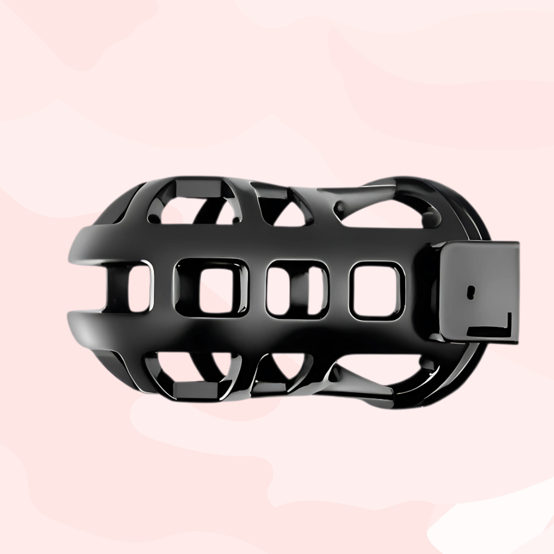 Materials and weightA front on view of the chastity cage, this cage is shown without the base ring attached.